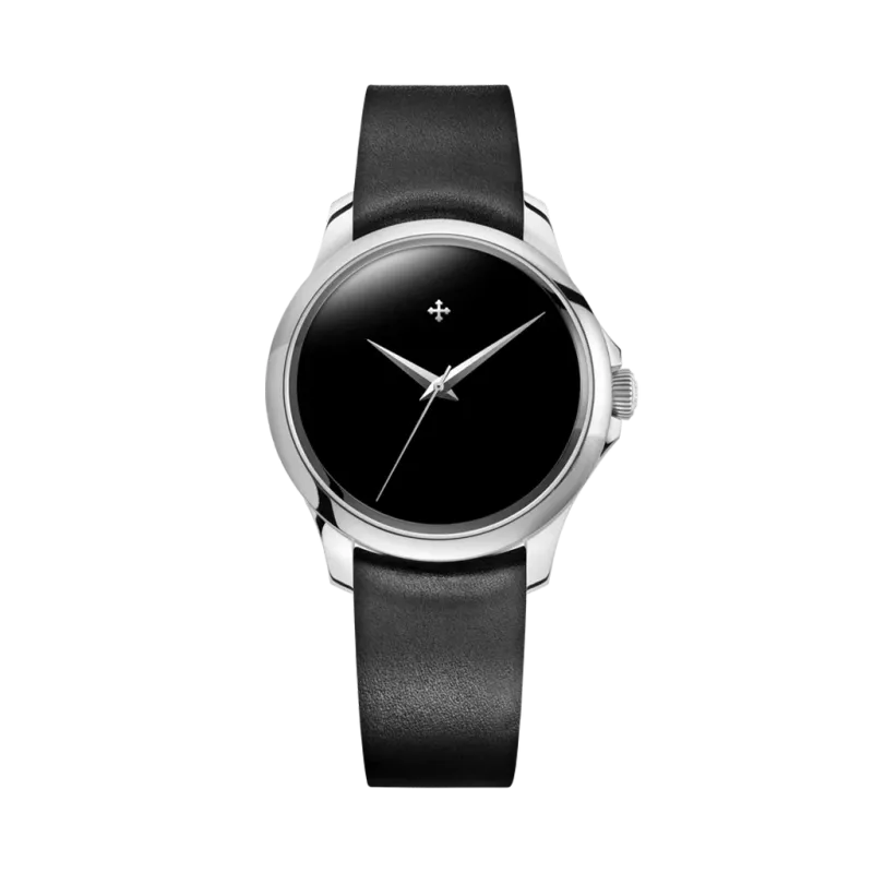 Venezianico Redentore Ultrablack kombinerer minimalisme og eleganse i et tidløst design. Den sorte skiven er resultatet av bruken av den eksklusive japanske Musou Black™-malingen, som er i stand til å absorbere 99,4 % av lyset, og gir en uforglemmelig visuell opplevelse og en unik skive. Det er ingen skygger som forstyrrer, kun logoen og viserne som skiller seg ut på en svart og dyp bakgrunn som en avgrunn. Klokken har en sort skinnrem, laget av Anilveau, som er en ekslusiv skinntype fra Frankrike. Drives av et automatikkverk og er vanntett ned til 100 meter.